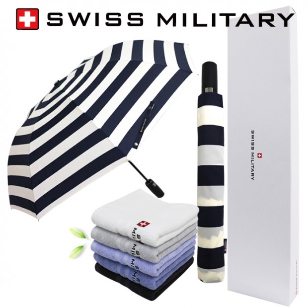• 스위스밀리터리 2단자동네이비스트라이프+140타올 세트