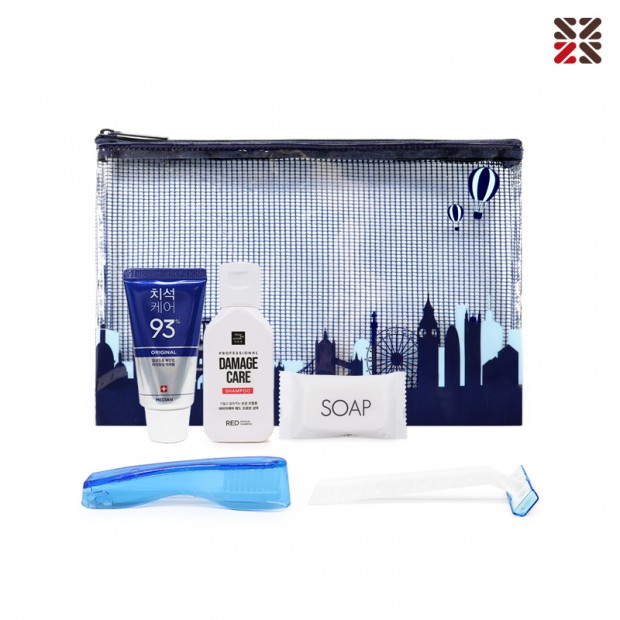 미장센샴푸50g, 비누, 칫솔, 치약40g, 면도기, 종이케이스(250)