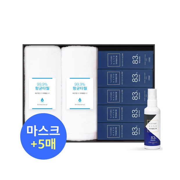 항균타올2P+손소독제100ml 5P + 마스크5P