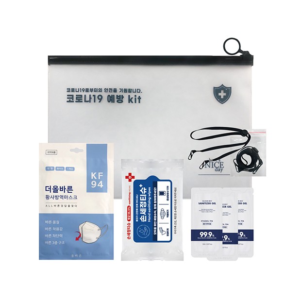 PCV지퍼백, KF94 마스크, 손세정티슈, 마스크스트랩, 손세정제3개