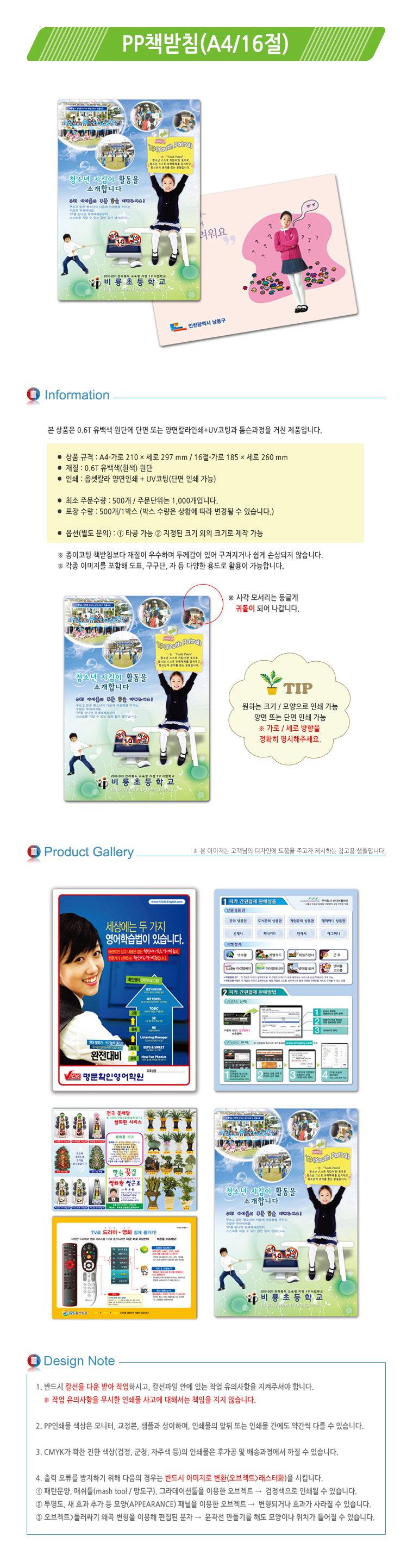 A4-가로 210 × 세로 297 mm , 16절-가로 185 × 세로 260 mm / 0.6T 유백색 PP원단