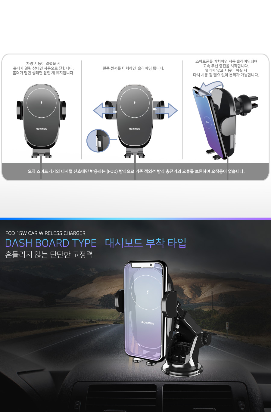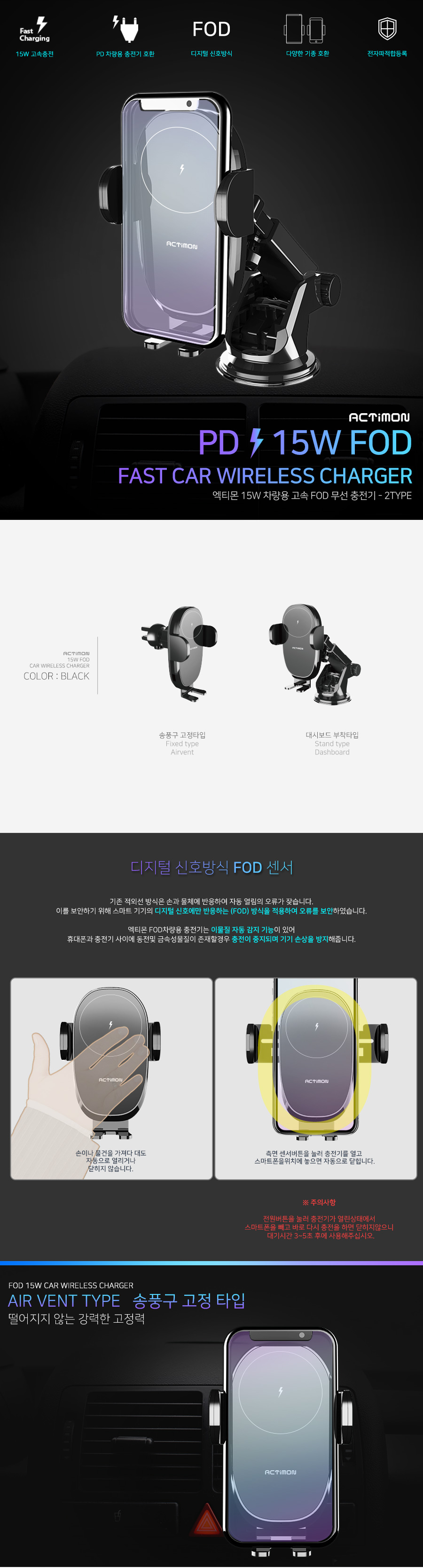 • 엑티몬 15W차량용 무선고속FOD충전기(C타입)