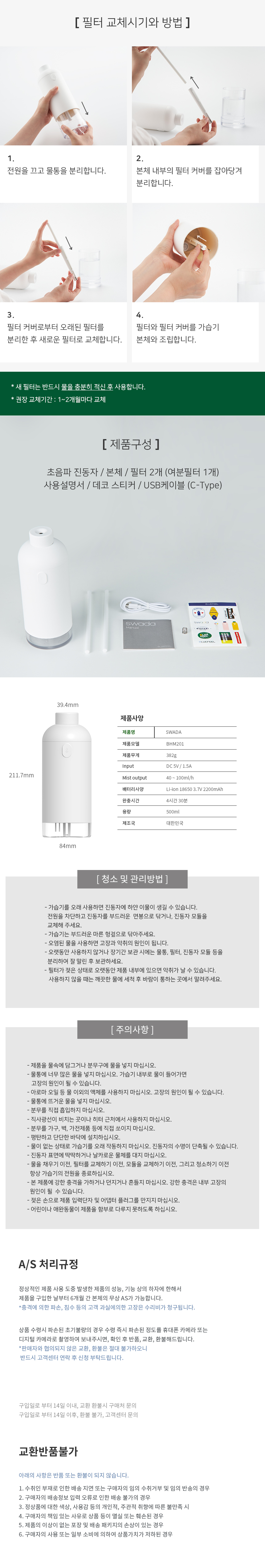 초음파진동자/본체/필터2개(여분필터1개)/설명서/데코스티커/USB케이블(C타입)