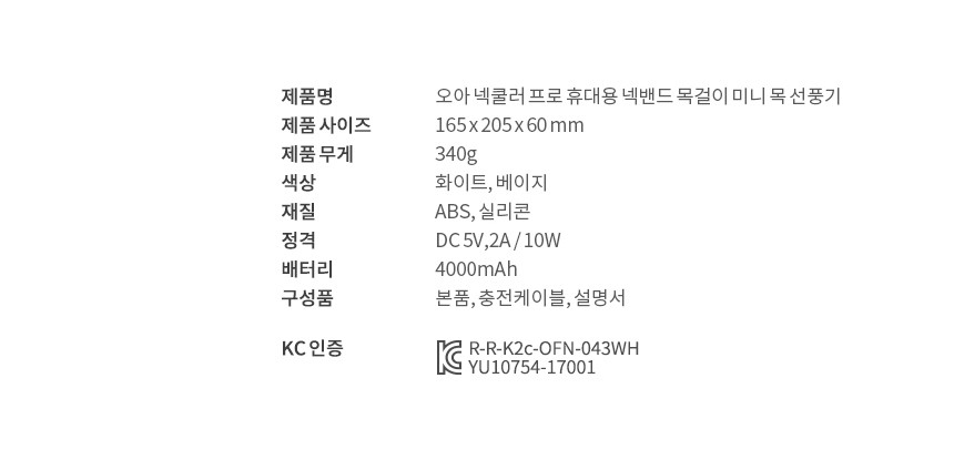 • 오아 넥쿨러 프로 휴대용 넥밴드 미니 선풍기