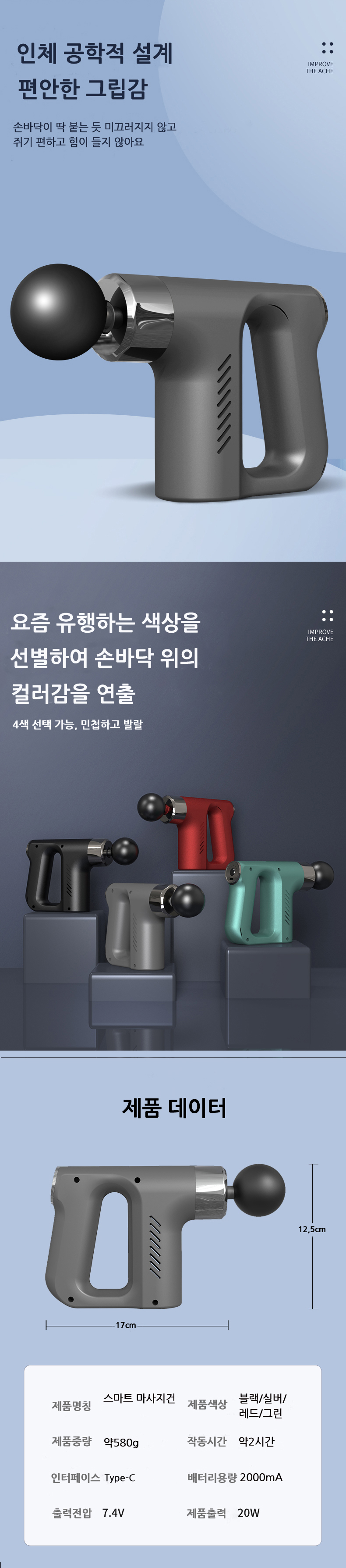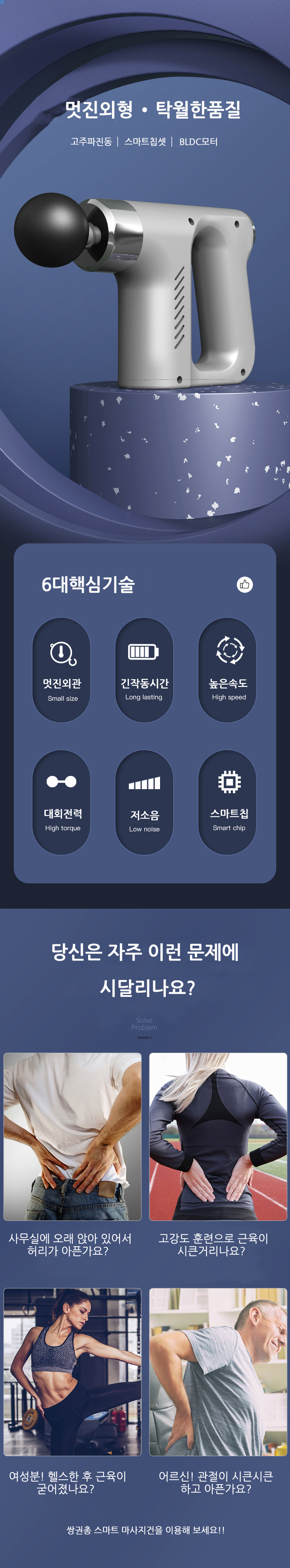 • 저소음 스마트 미니 전동 마사지건 2000mah