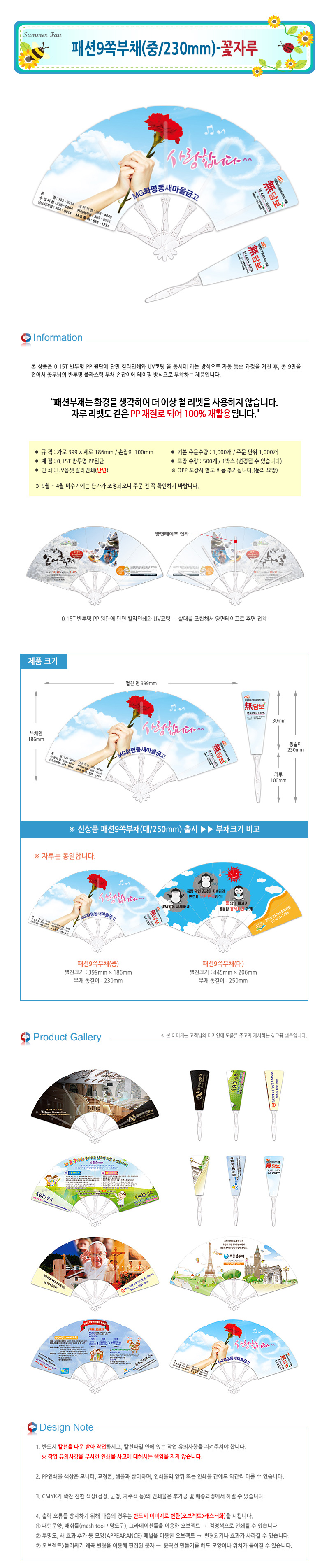 • 패션9쪽부채(중/230mm)-꽃자루