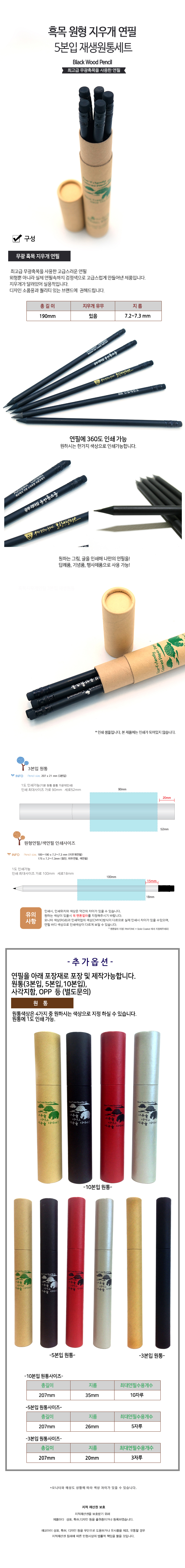 연필 5자루 + 종이 원통 케이스 / 연필/원통 : 검정/재생