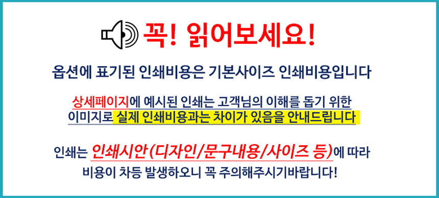 • 국내택배 배송비는 무료배송을 원칙으로 하나 제작상품에 따라 상이하게 적용될 수 있습니다.