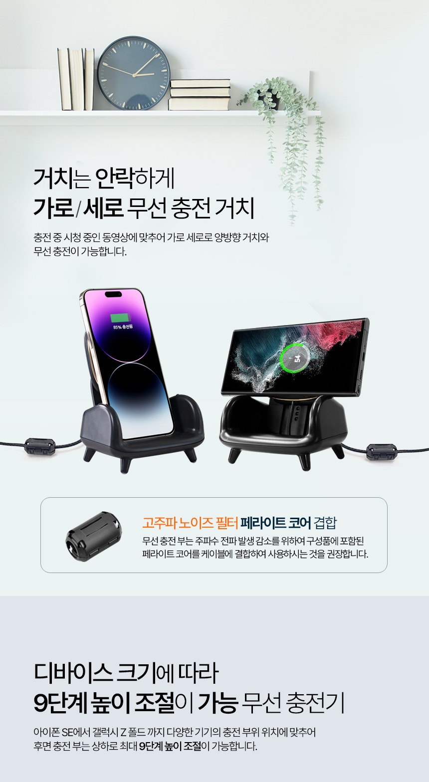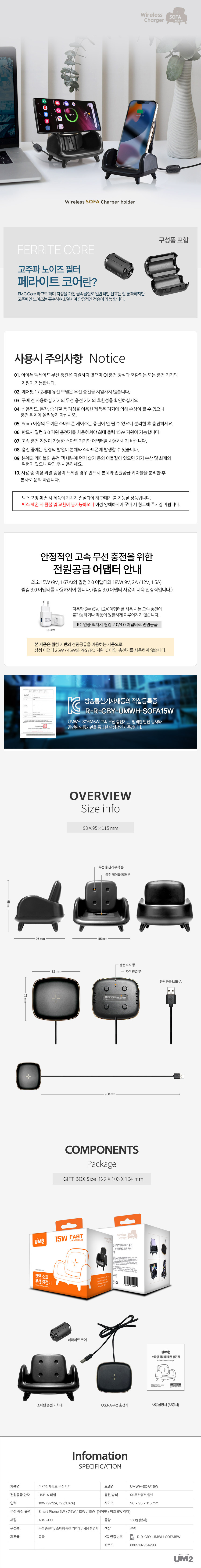 소파형충전거치대,USB-A무선충전기,페라이트코어,사용설명서