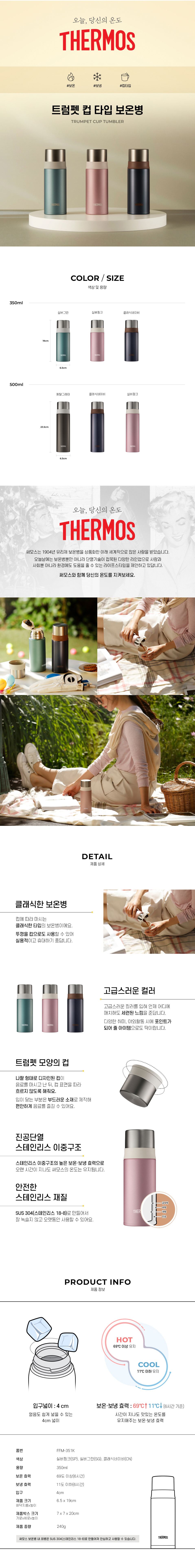 • 써모스 트럼펫 컵타입 보온병 FFM-351K