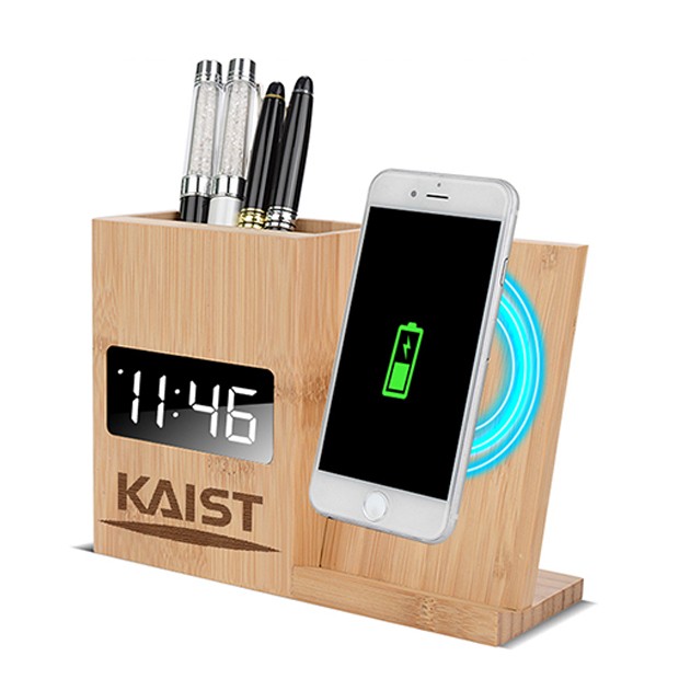 • 펜꽂이 무선충전 우드 LED시계
