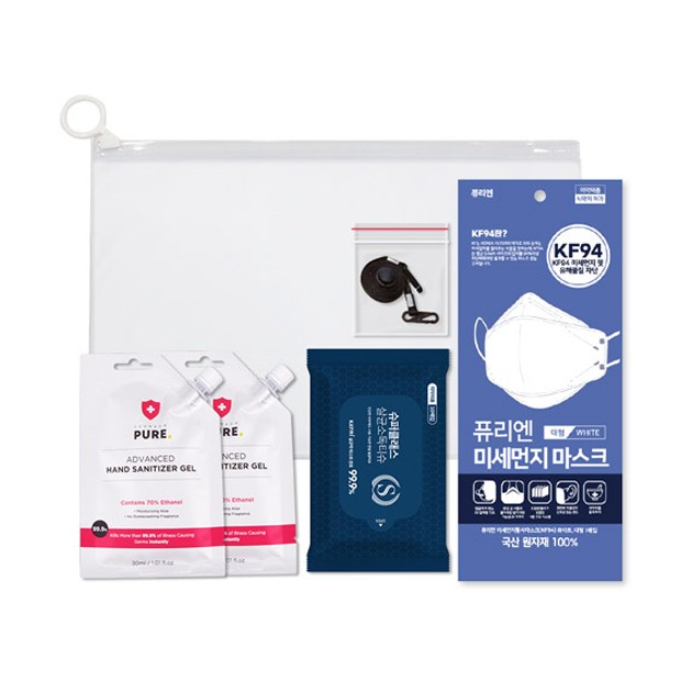 손소독티슈 10매 1P + KF94마스크 1P + 손소독젤 30ml 2P + 마스크스트랩 1P