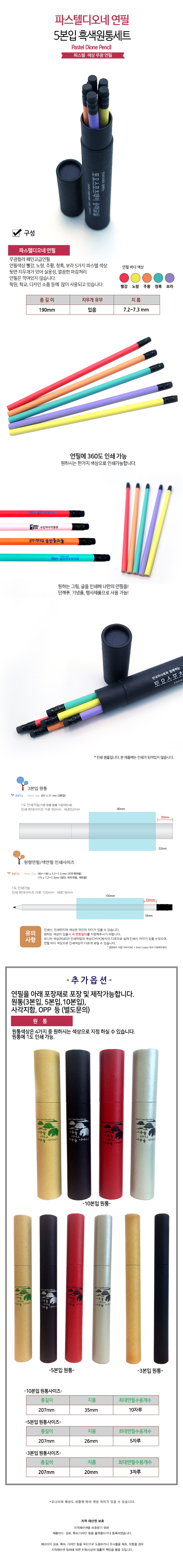 연필 5자루 + 원통 / 연필 : 파스텔 색상 / 원통 : 검정