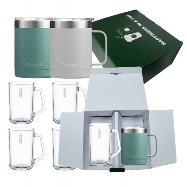 글라스락 머그 텀블러 + 글라스락 유리 컵 + 기프트박스