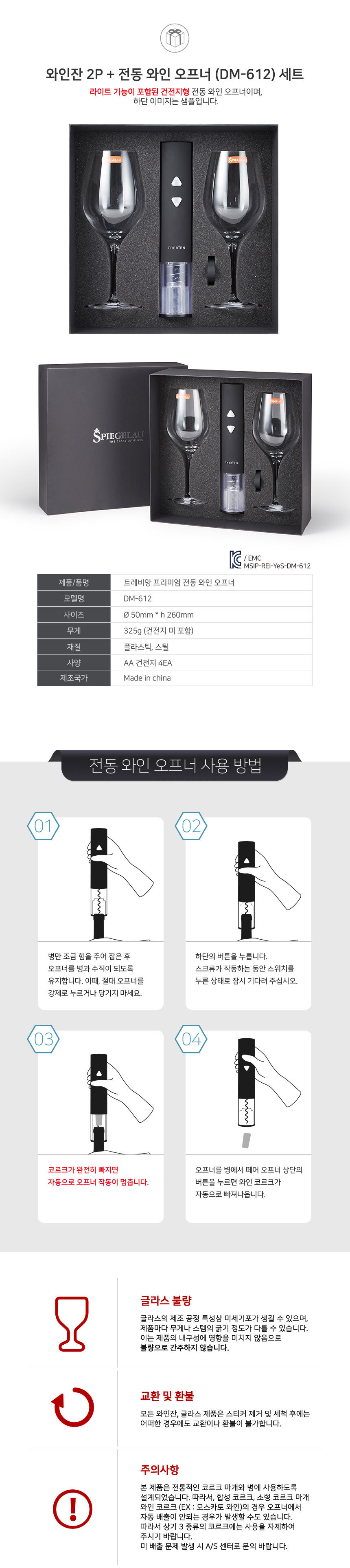 • 슈피겔라우 비노비노 보르도 2P+ 트레비앙 전동 와인오프너 DM-612 세트 [별도문의] 인쇄무료