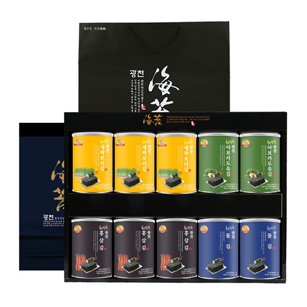 광천 새싹보리김 36g x 3,아보카도유김 36g x2, 홍삼김 36g x 3 , 돌김 36g x 2