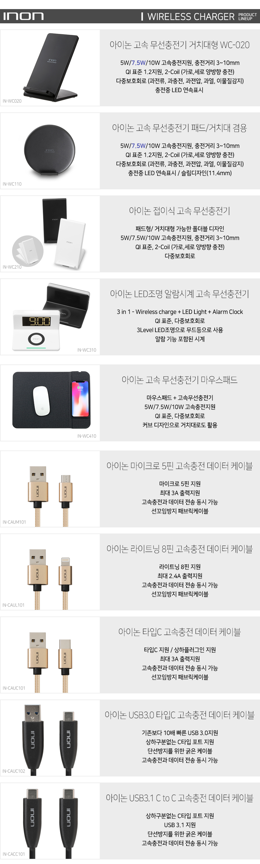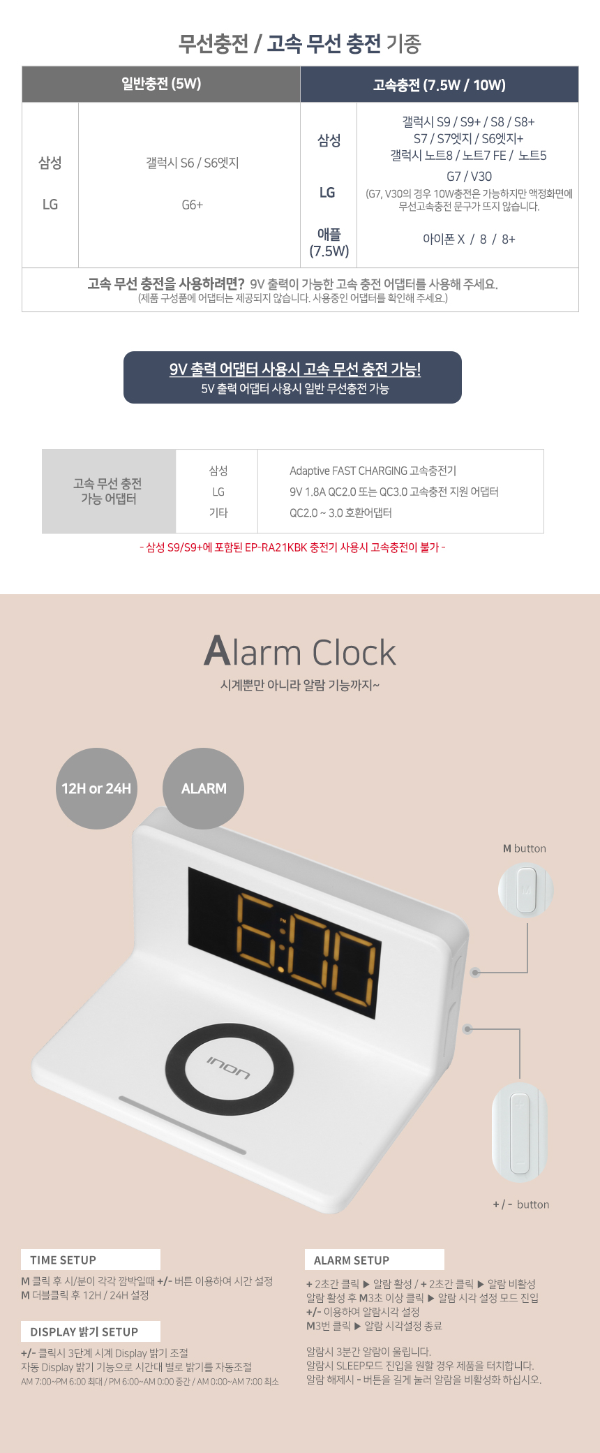 • 아이논 LED조명 알람시계 고속 무선충전기