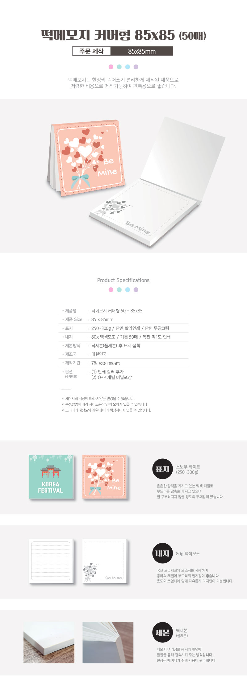 • [주문제작] 떡메모지 커버형 85*85mm (50매)