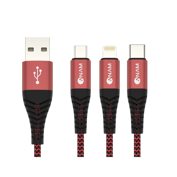 • [아남] 3in1 일반형 메탈 패브릭케이블 레드 2M
