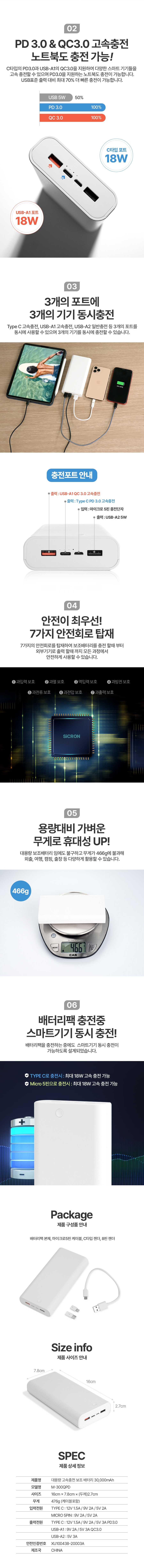 • MPLUS 9V 12V PD 고속 충전 대용량 보조배터리 (30W) (30000mAh)