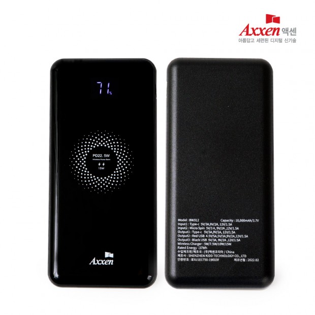 • 액센 15W 초고속 무선충전 보조배터리 10,000mAh BW312 [인쇄무료]