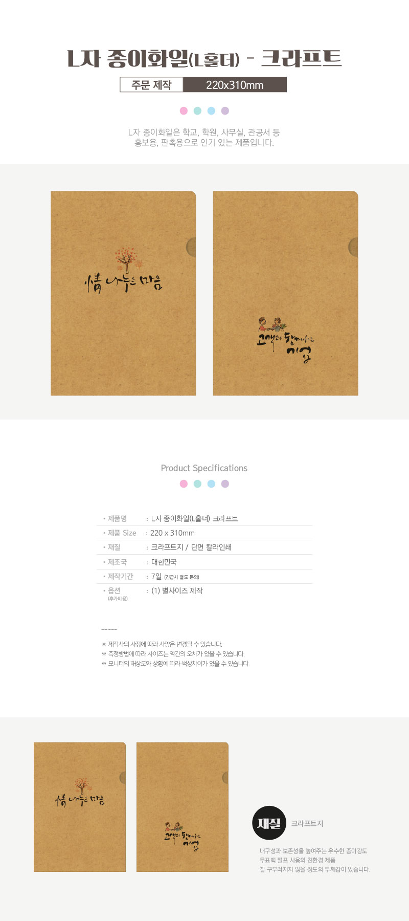 • [독판 주문제작] L자 종이화일(L홀더) 크라프트