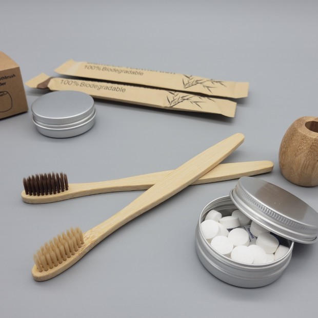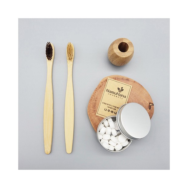 대나무칫솔2+크라프트포장/고체치약20정+틴케이스/대나무칫솔꽂이/제품케이스