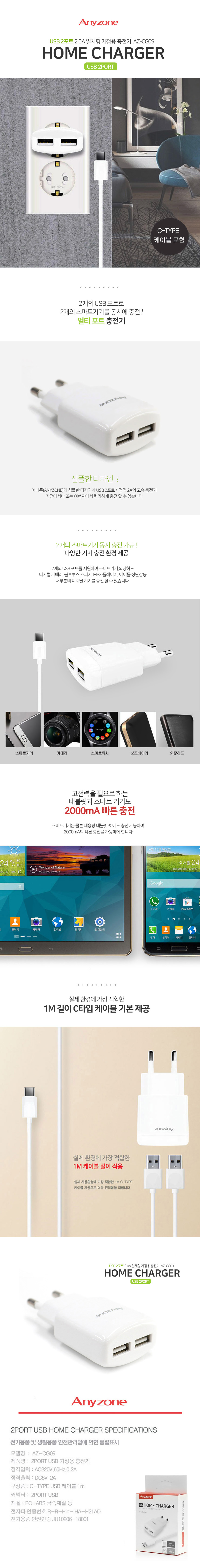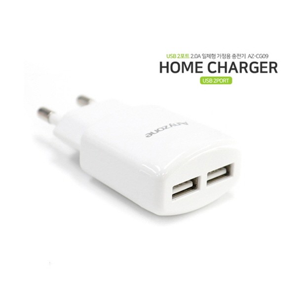 • USB 2포트 2.0 일체형 가정용 충전기 AZ-CG09