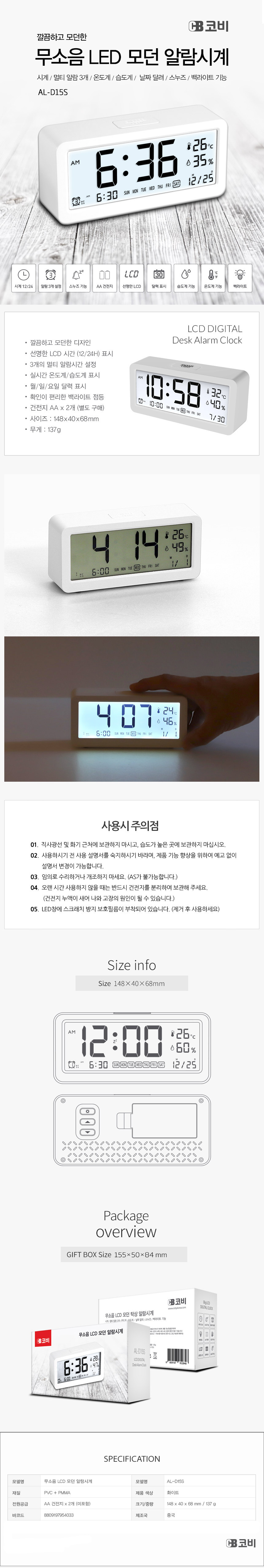 • 코비 무소음 LED 사각 모던 알람시계 (건전지미포함)