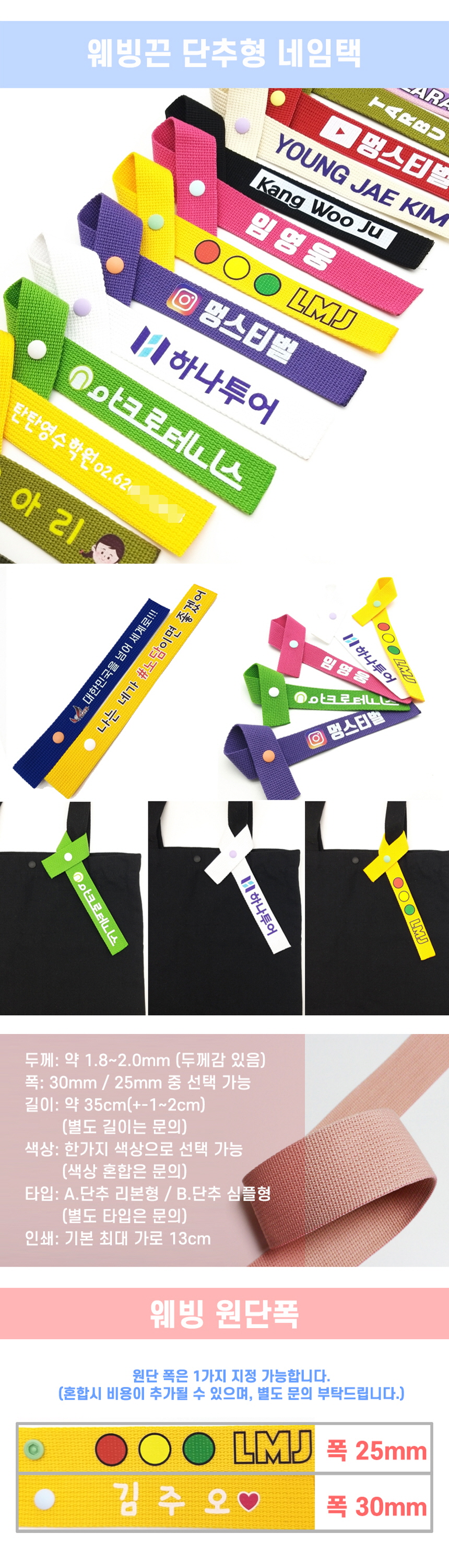 • 웨빙끈 단추형 네임택 웨이빙 이름표
