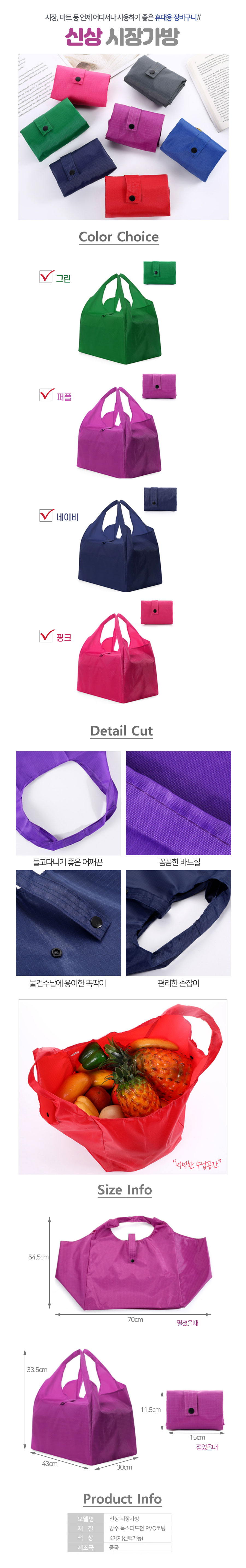 • 컬러 장바구니 똑딱이 접이식 시장가방 휴대용 미니에코백