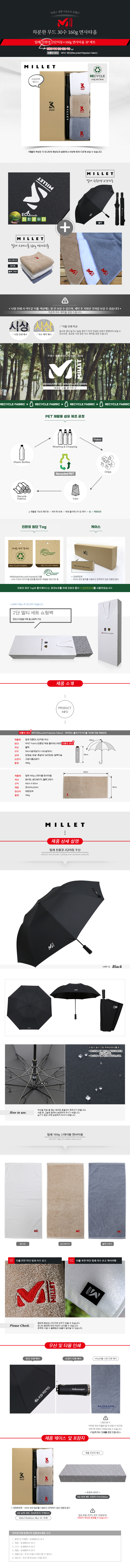 • 밀레 친환경 2단자동+160g 면사타올 3P 세트
