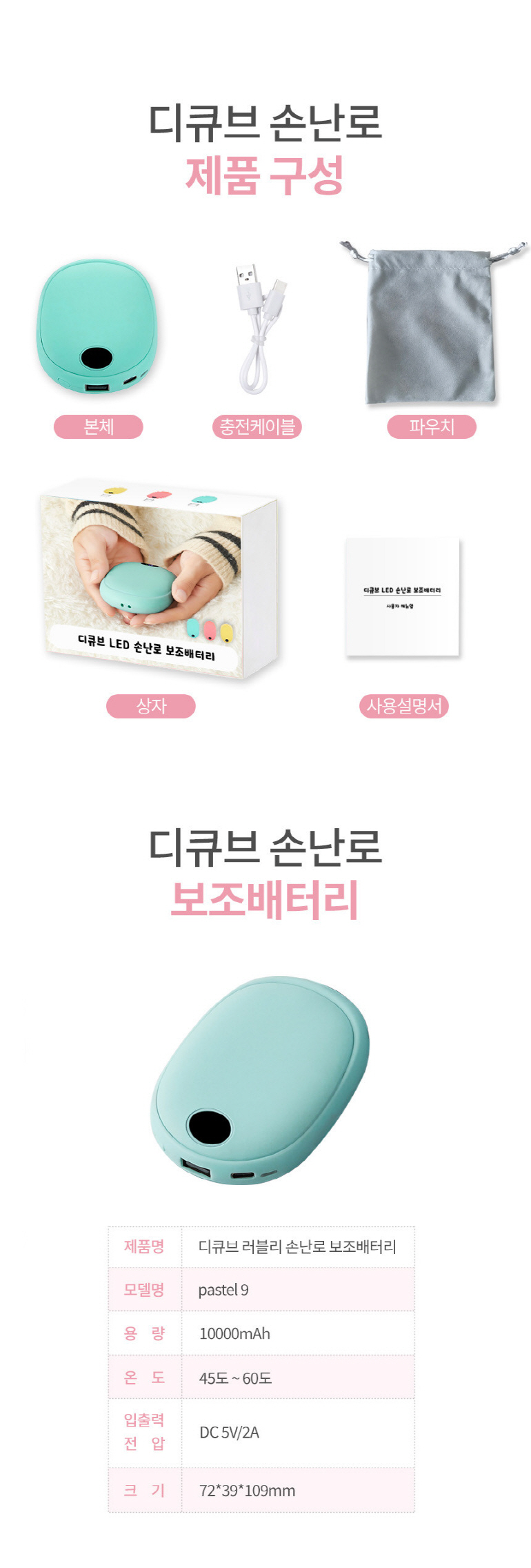 • 충전식 손난로 보조배터리 pastel 9