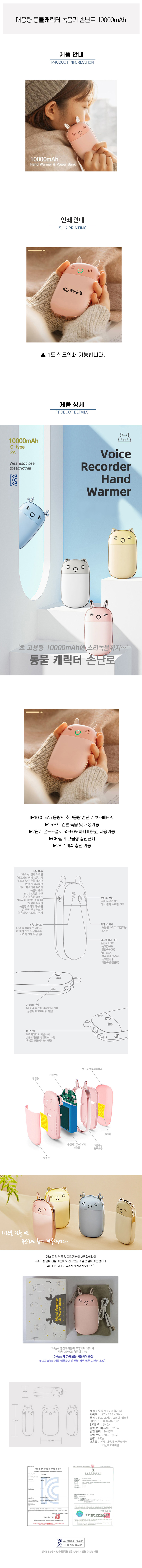 • 대용량 동물캐릭터 녹음기 손난로 보조배터리 10000mah