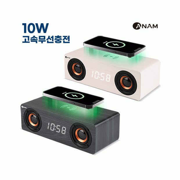 • 아남전자 R120 고속 무선충전 블루투스스피커 우드시계