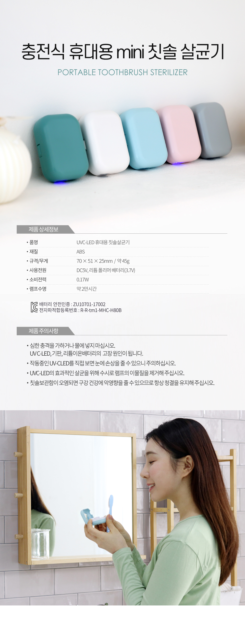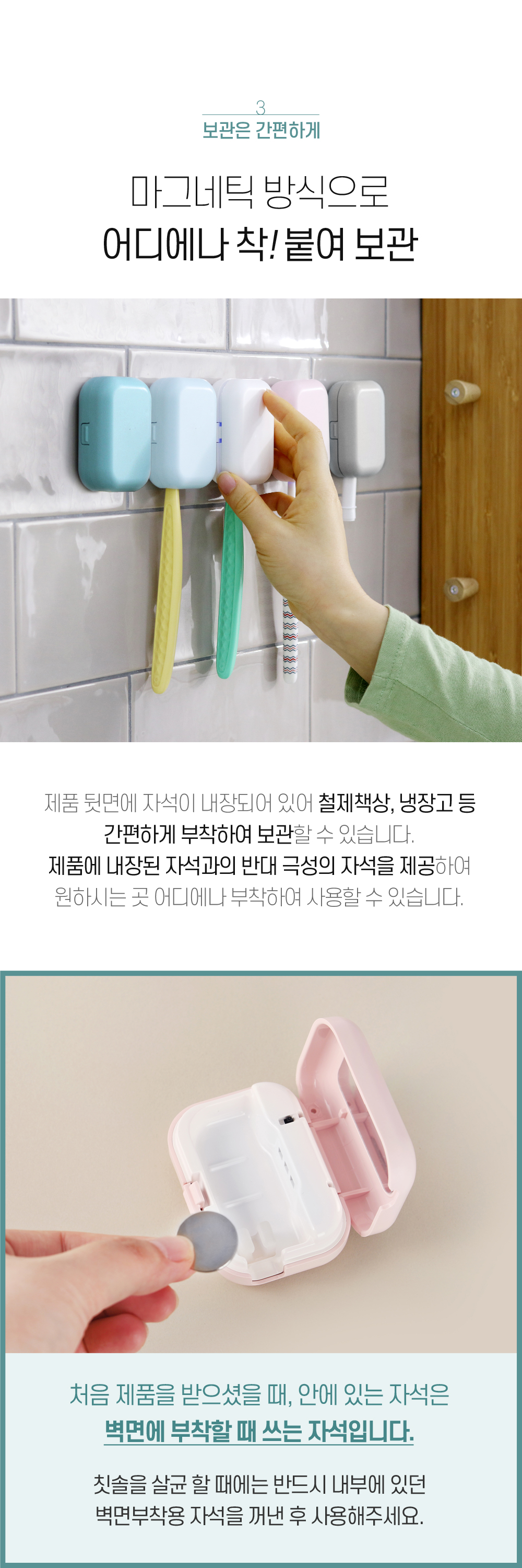 작은사이즈로 휴대하기 편하고,어떤 사이즈나, 모양의 칫솔 거치도 가능