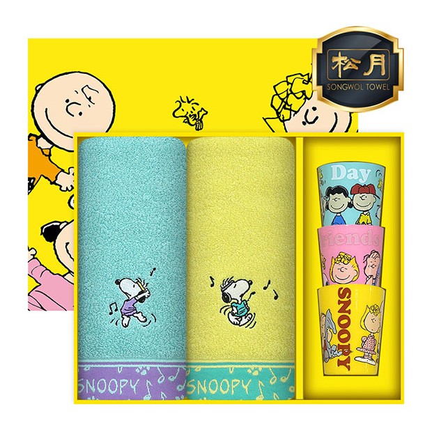 • [스누피전용 타월 컵 세트] 스누피 뮤직40 2장 스누피 3P 컵 세트