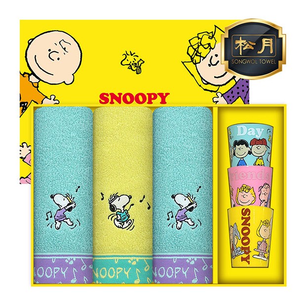 • [스누피전용 타월 컵 세트] 스누피 뮤직40 3장 스누피 3P 컵 세트