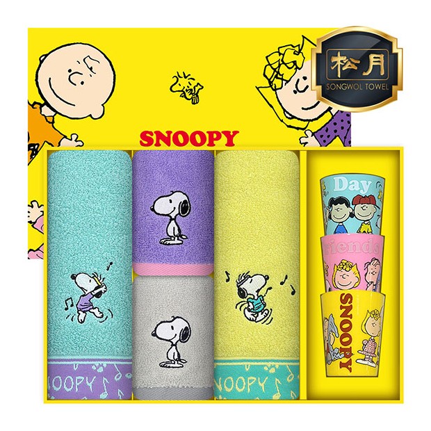 • [스누피전용 타월 컵 세트] 스누피 뮤직40 2장 스플릿36 2장 스누피 3P 컵 세트