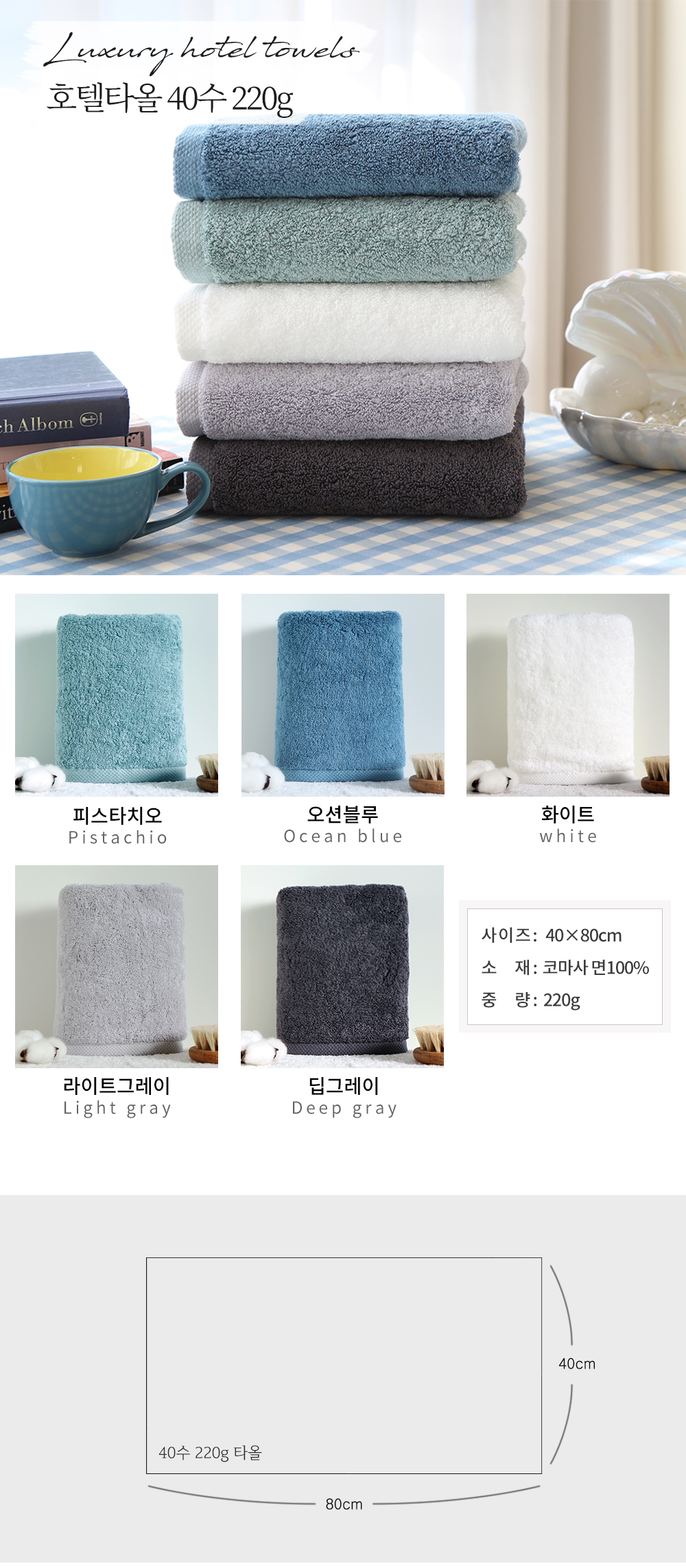 • 코튼클라우드 호텔수건 40수 220g