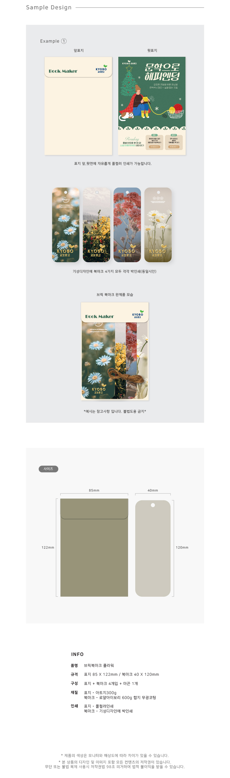 표지(접었을때) 85*122mm / 북마크(1개) 40*120mm