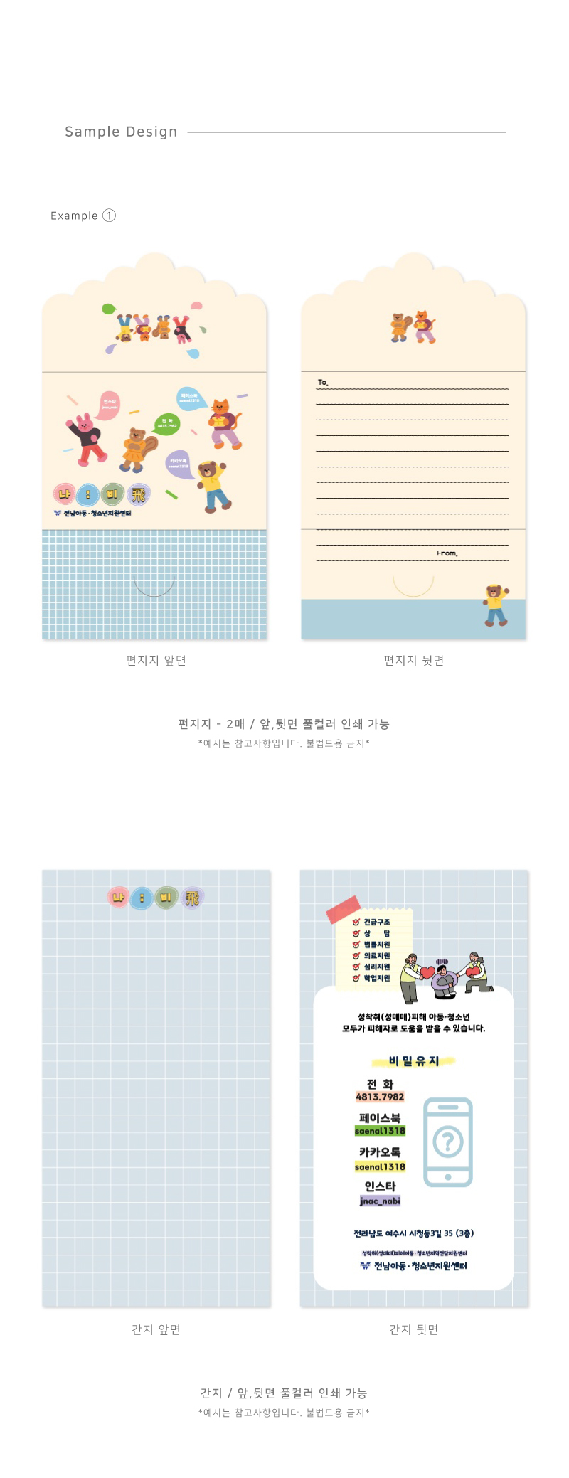 최소수량 1천개부터 편지지 2장 + 간지 앞,뒷면 풀칼라무료