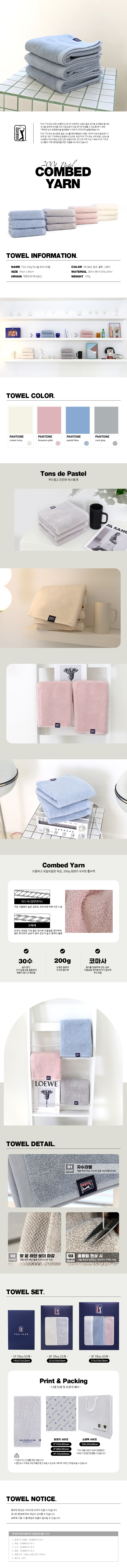 • PGA 200g파스텔 코마사 타올 3P