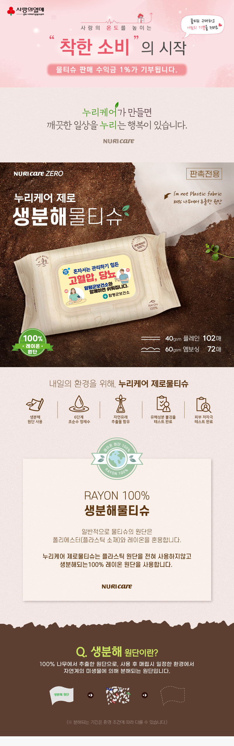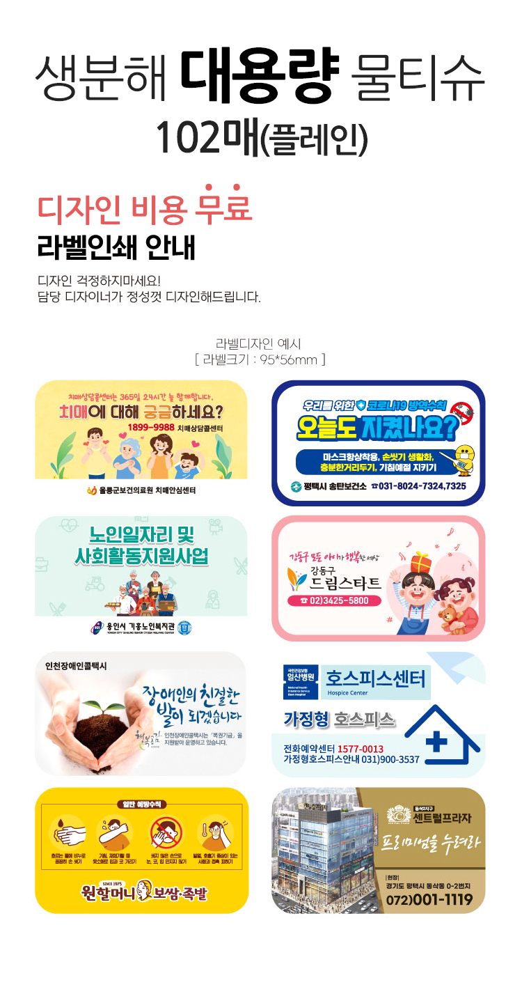 • 대용량 플라스틱제로 생분해 물티슈 102매(40gsm)
