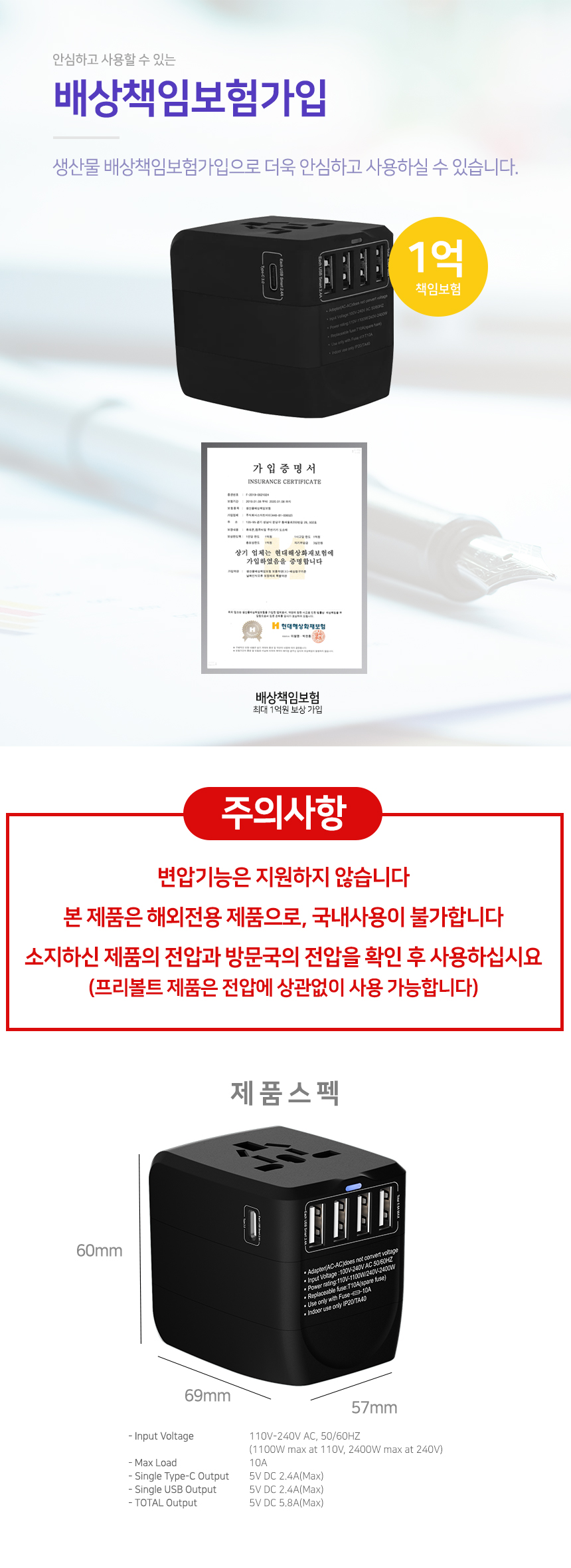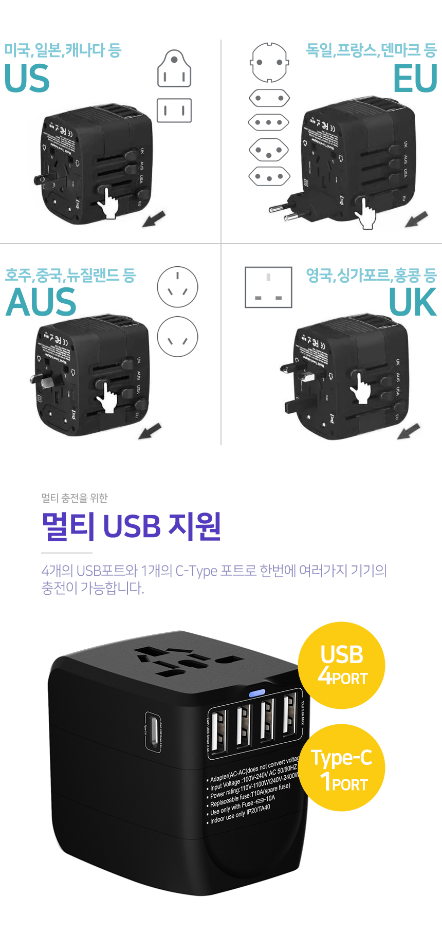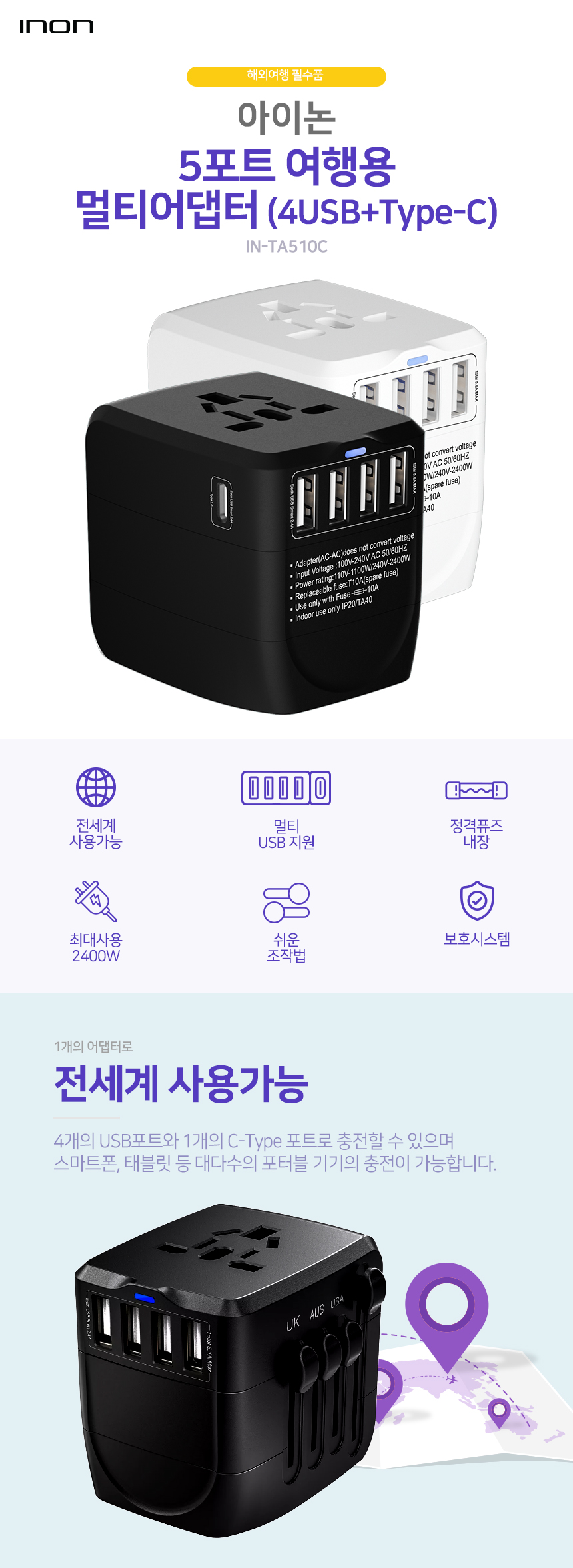 • [충전기]아이논 USB 5포트 해외 여행용 어댑터 IN-TA510C