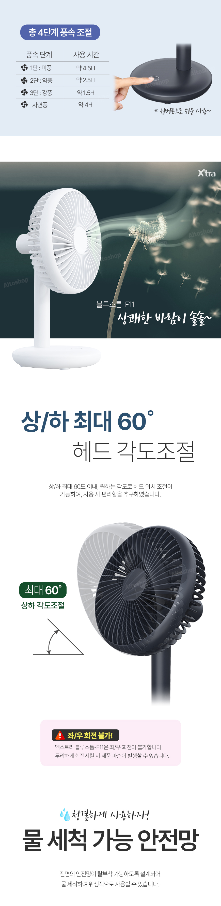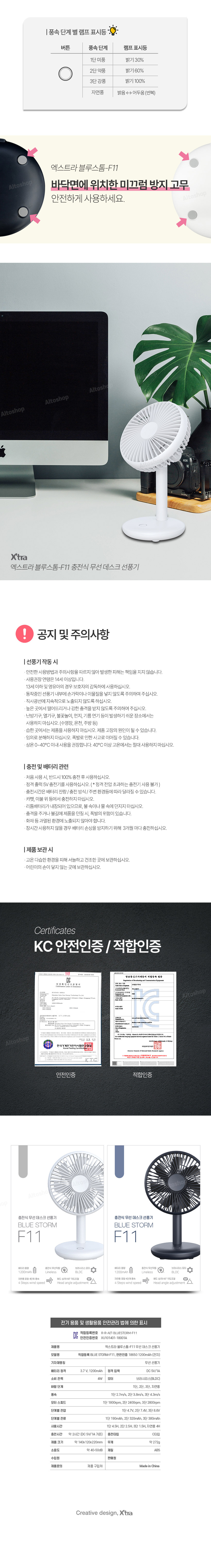 • 엑스트라 블루스톰-F11 충전식 무선 데스크 선풍기