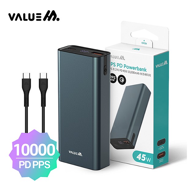 • 밸류엠 PPS 초고속 PD 45W 메탈보조배터리 10000mAh