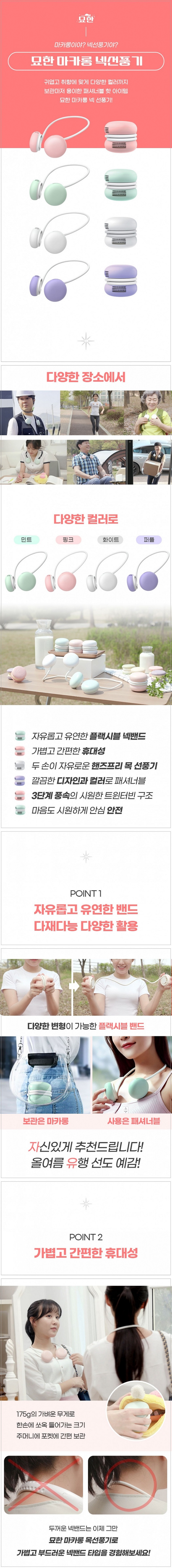 • [묘한] 휴대용 마카롱 넥밴드선풍기