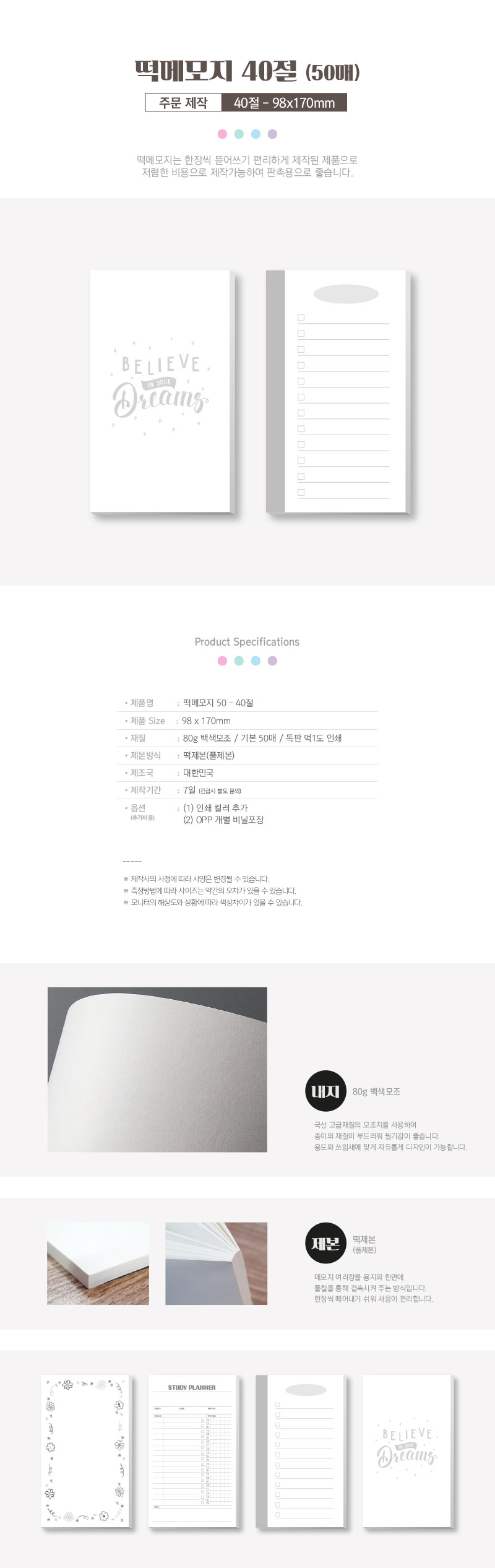 • [주문제작] 떡메모지 40절 (98*170mm/50매)