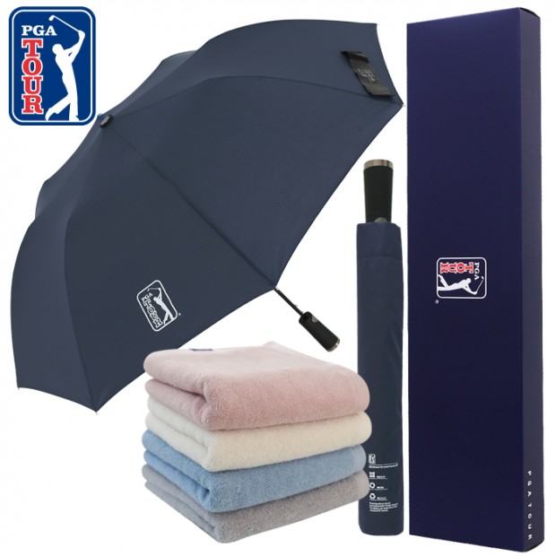 • PGA 친환경그린 2단자동 우산+200g코마사타올세트